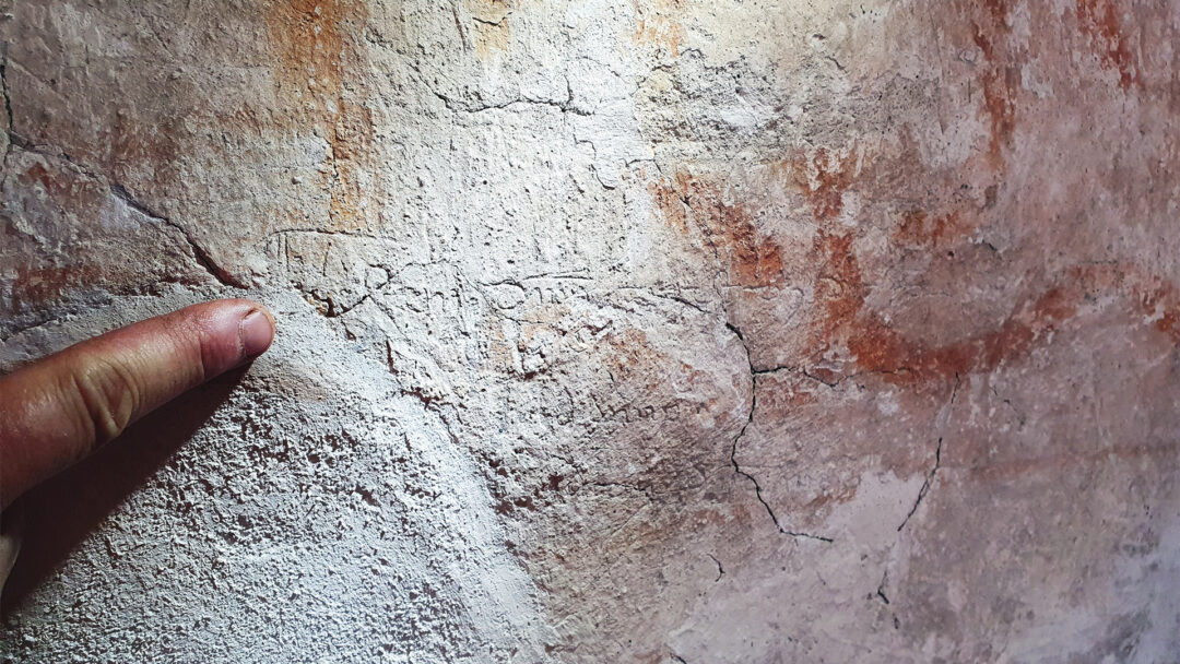 Det var närmast en slump att byggnadsantikvarien Petter Jansson på Regionmuseet Skåne noterade de ovanligt prydliga men nerslitna bokstäverna i samband med en inventering 2018. Tre fina rader som stack ut bland en massa andra tecken på den skrovliga väggen – linjer och mönster som på ett medeltida klotterplank. De verkade vara latinska bokstäver.