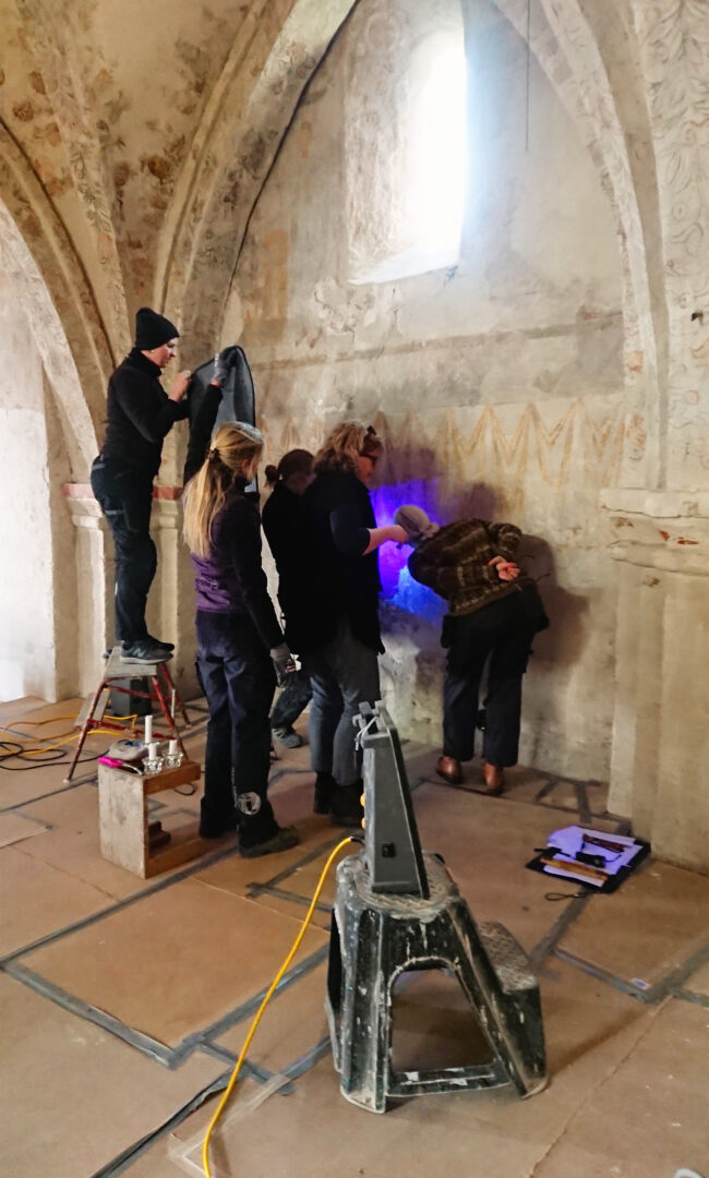 – Hur länge kyrkan stod oputsad efter själva byggfasen vet vi inte med säkerhet, men det är troligt att man relativt snabbt har lagt en underputs, på väggytorna, innan målningsputs lades på – högre upp på väggen där de ursprungliga bibliska målningarna finns. Därför kan texten vara från 1100-talet om man ser till byggnadsfasen och materialen, säger Hanna Eriksson.