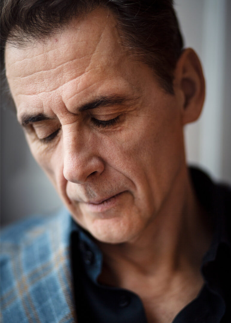 David Lagercrantz vänder på sig i soffan, tittar ut genom fönstret och ”blir” en annan person som svarar: