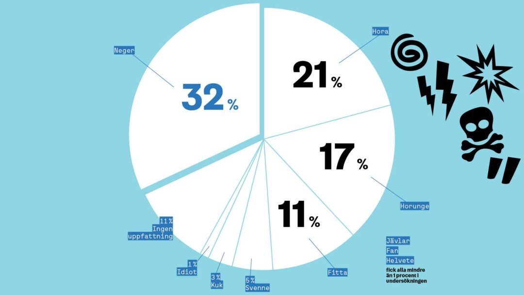 I den första fasen var det en tredjedel av dom som nämnde n-ordet som inte skrev ut det utan föredrog olika omskrivningar som just n-ordet eller n*ger. Då var det betydligt fler som nämnde ord med koppling till sex och kön som värst eller fulast. Men inför valet mellan dom tio orden i den andra fasen var det alltså många som i stället bestämde sig för n-ordet som det grövsta i svenskan.