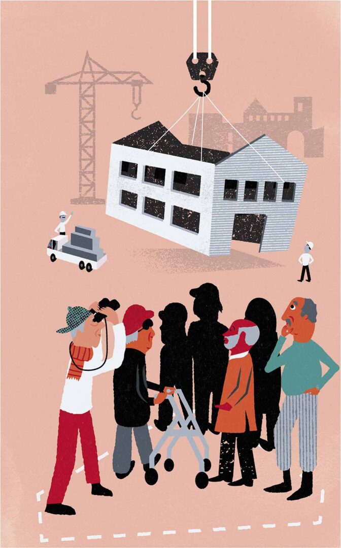 Nybrobygget i Härnösand har fångat intresse, särskilt bland umareller, alltså äldre herrar, som nu fått en särskild plats för att följa arbetet.