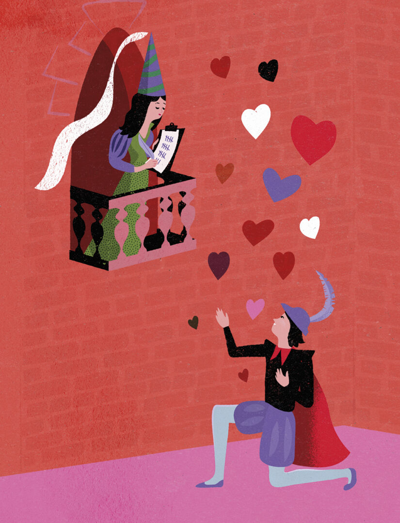 4. Den drabbade rollen (offret): Romeo försmäktar av kärlek.