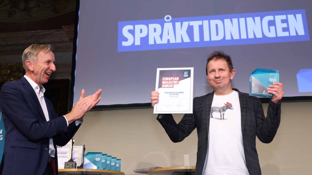 Språktidningen tilldelades i går juryns specialpris för tidskrifter vid European publishing awards i Wien. Juryn valde ut Språktidningen bland 370 tidskrifter från hela Europa. I motiveringen lyfte juryn fram ”unique craftwork: diversified, colourful and lively”.