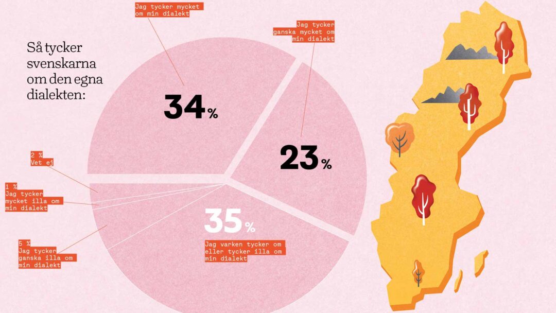 Hela 57 procent av svenskarna gillar sin dialekt. Bara 6 procent tycker illa om den. Och 35 procent är varken positiva eller negativa till den egna dialekten.