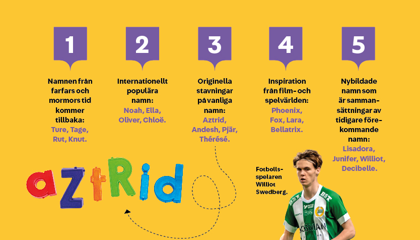 – Ella, Oliver och Noah har ju funnits med ett tag. Men på den senaste listan över de 100 mest populära babynamnen dyker även Otis och Ted upp.
