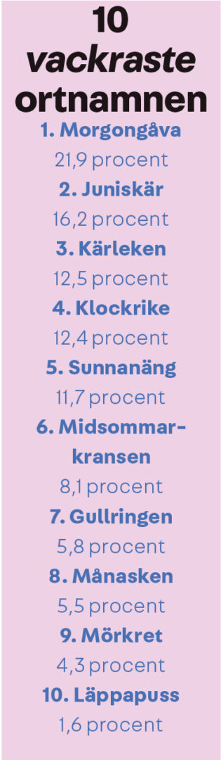 Morgongåva är Sveriges vackraste ortnamn. Och Snålkuk är roligast i landet. Det visar Språktidningens omröstning.