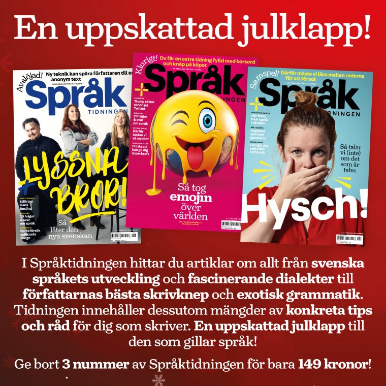 I Språktidningens julkalender kan du tävla om O som i ordbok. Den fjärde ledtråden till det tredje tävlingsordet kommer i dag. I år har vi…